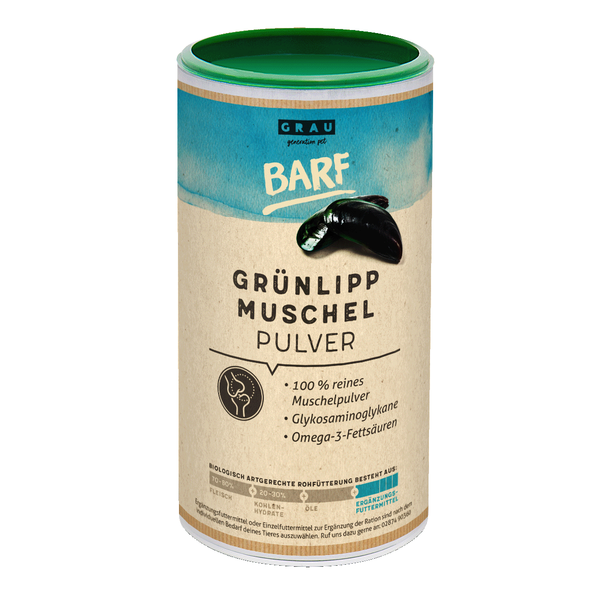 GRAU Grønlæbet Muslingepulver er 100% rent og skånsomt frysetørret. Denne proces er afgørende for at bevare de sarte, bioaktive stoffer (især fedtsyrerne), som ødelægges i varmebehandlede produkter af lavere kvalitet.